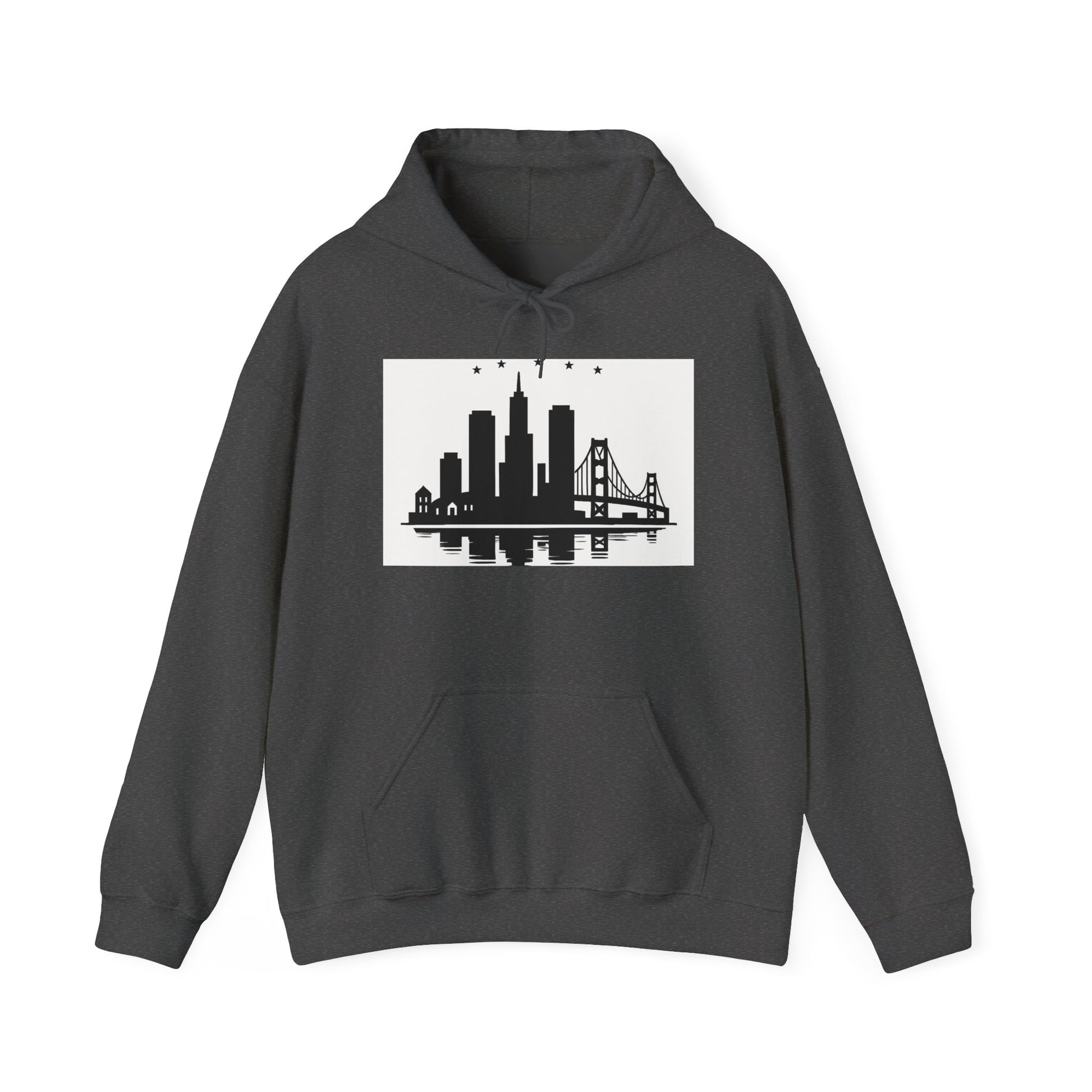 Bring city lights to your wardrobe with the Urban Skyline Hoodie — a perfect blend of comfort, design, and understated style. This midweight hoodie captures the magic of a night downtown, featuring a crisp monochrome skyline that reflects clean architectural lines and the quiet charm of an evening by the water.